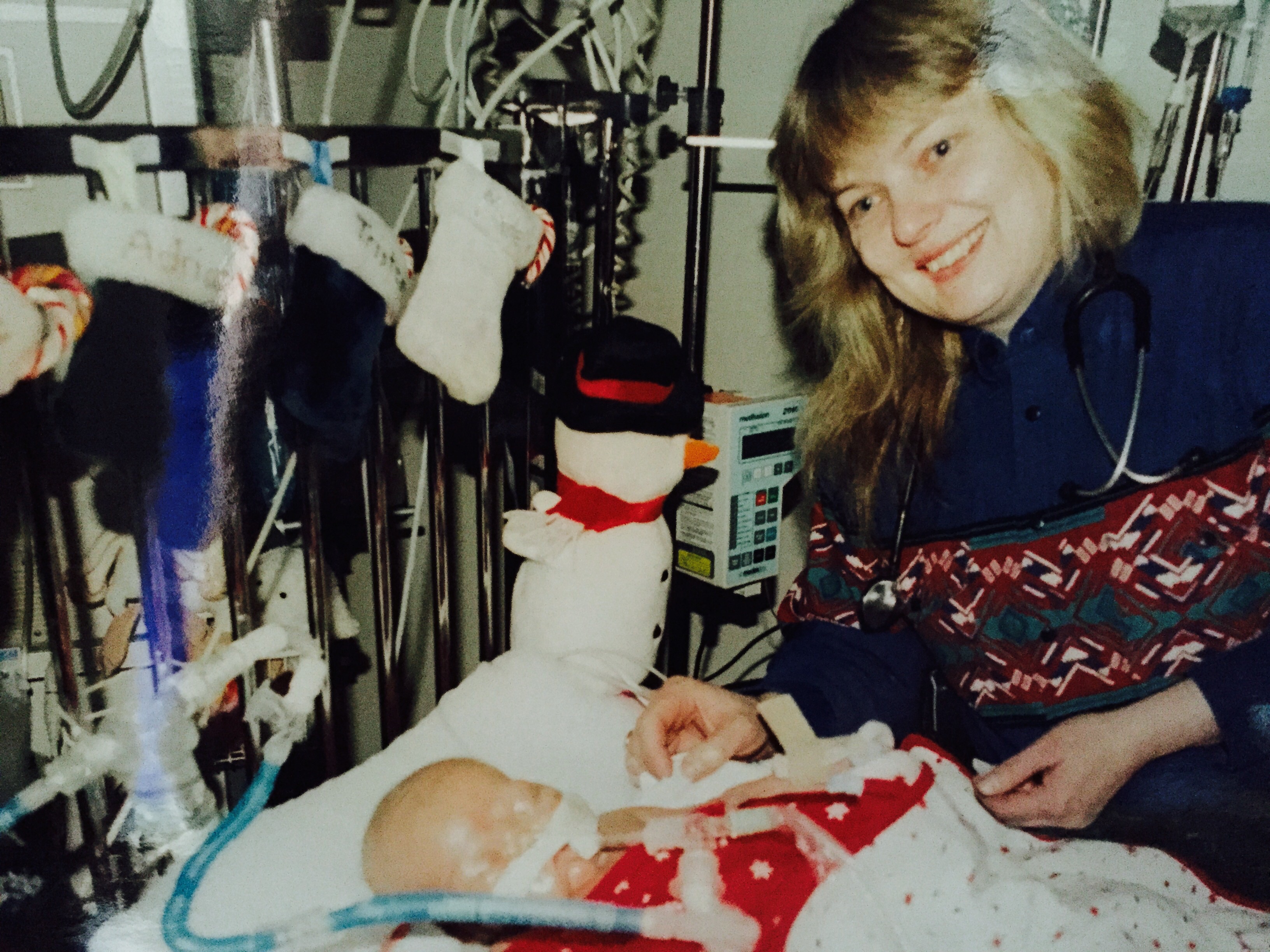 One thing not “to the point” like I promised. The night of her cardiac arrests, I was sitting in a chair next to her incubator bed, and a charge nurse came in whom we had never met. She was doing a lot of fast talking to Adrian, and I was becoming very annoyed that he was just letting this conversation continue in the way it was headed. She finally made her point, which was to have us sign a DNR (Do Not Resuscitate) Form, when she said, “Even if you got her back, you wouldn’t want her.”